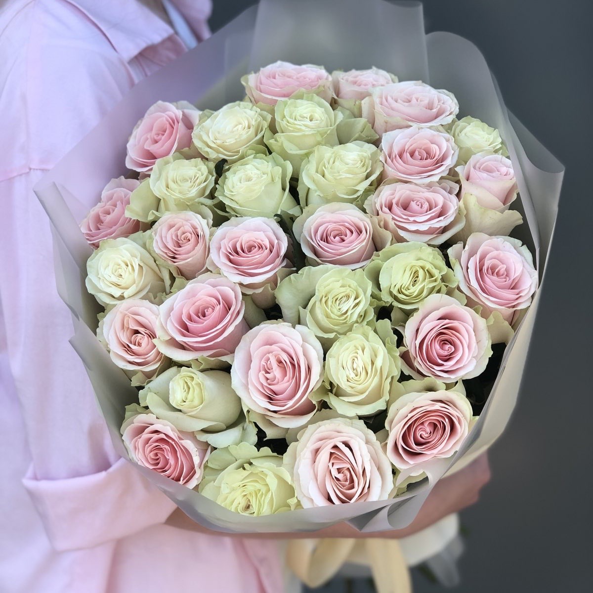 Букет из сочетания белых и розовых роз, сможет поразить даже самое гордое и неприступное сердце самой «Снежной Королевы» с первого взгляда.